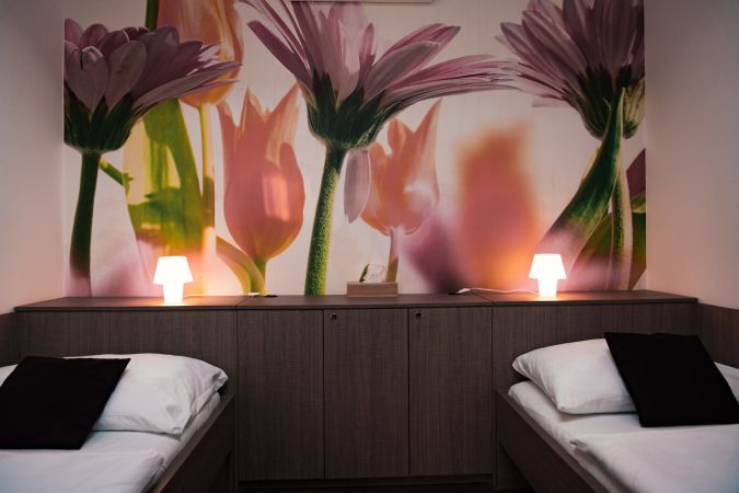 Dále je hostům k dispozici společenská místnost vybavená samoobslužnou lednicí s nápoji, kávovarem a mikrovlnou troubou.